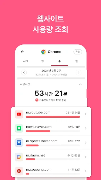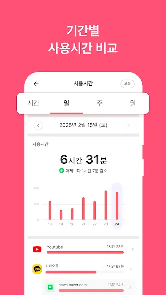 • 시간·일·주·월 단위로 스마트폰 사용량을 비교할 수 있어요.