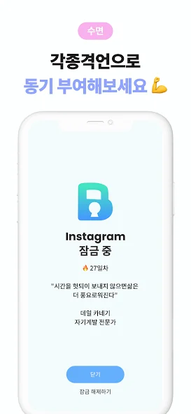 과도한 앱 사용을 자동으로 차단하여 당신의 매일이 알차고 유용해지도록 도와드립니다.