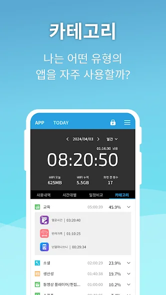 • 오늘 내가 스마트폰을 얼마나 사용했는지 실시간으로 체크하세요.