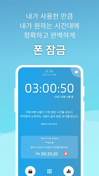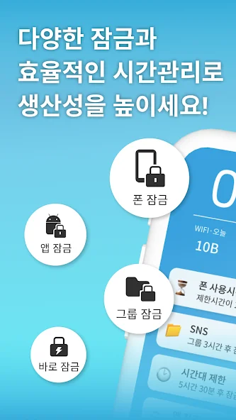 내 스마트폰 사용시간을 한눈에 확인하고, 폰 잠금·앱 잠금 기능으로 스마트폰 중독에서 벗어나세요!
