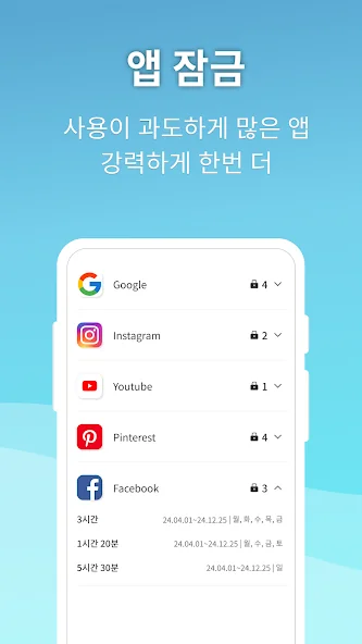 2) 스마트폰 사용관리/앱잠금/중독방지/사용시간 넌얼마나쓰니 어플 스크린샷