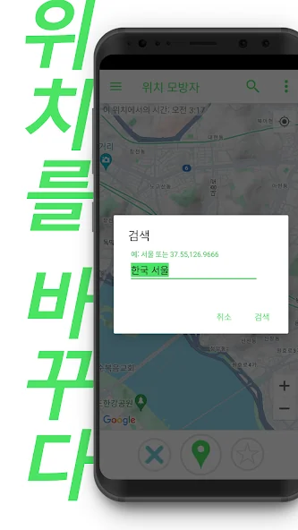아래는 위치 모방자 어플에 대한 스크린샷 정보입니다.