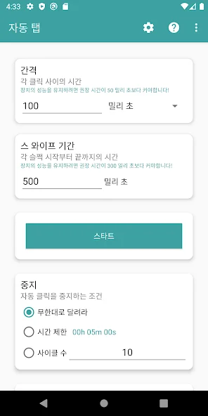 아래는 자동 클릭 어플에 대한 스크린샷 정보입니다.