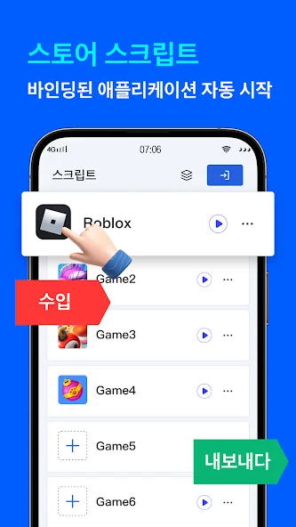- 자동 스크립트 가져오기/내보내기 가능