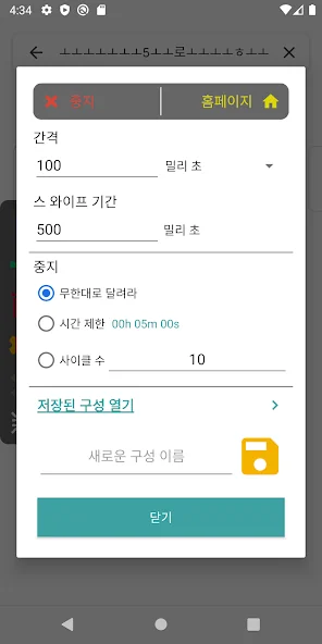 설정을 통해 전반적인 터치 간격, 터치 시간, 반복 횟수를 설정할 수 있습니다(퀵설정 지원)