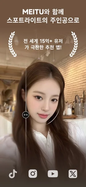 메이투(Meitu)는 사진 편집을 무료로 즐길 수 있는 앱으로, 간단한 터치만으로도 원하는 보정을 할 수 있어요. 셀카를 찍을 때 자연스럽고 예쁜 필터와 메이크업 효과를 더하거나, 재미있는 AR 스티커로 사진에 포인트를 주기 좋아요.