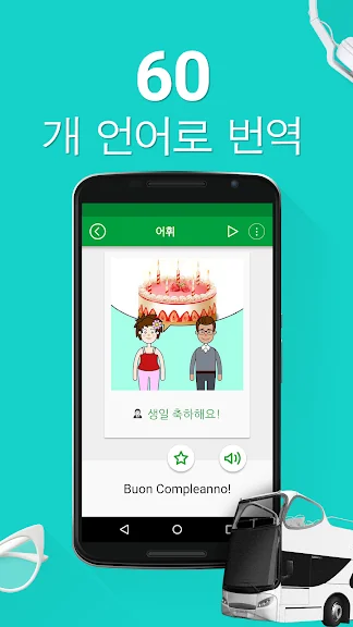 ✔ 60개의 언어-어느 나라 출신이건 상관 없이 각 구문을 이해하고 말할 수 있습니다.