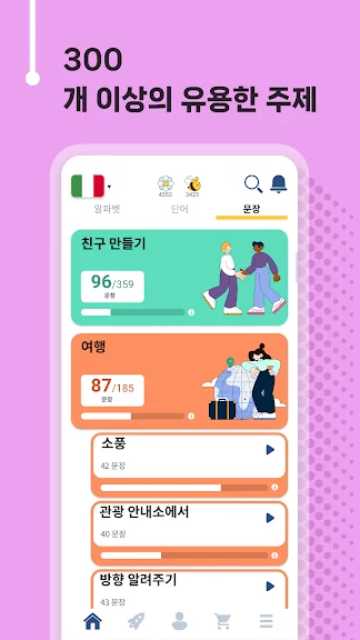공부하는데 특정 토픽이 필요한가요? 이탈리아어 공부에 필수적인 다양한 토픽을 직접 선택해 학습할 수 있습니다.