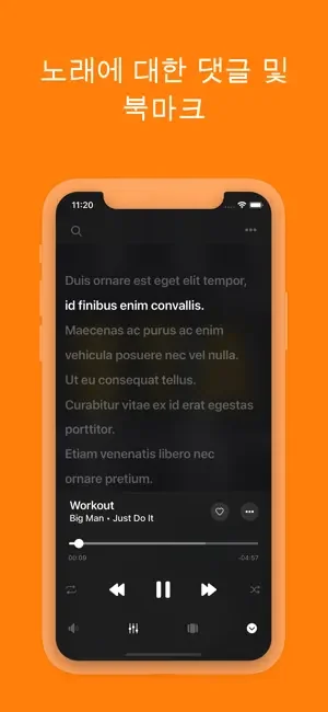 오디오 북 플레이어로도 사용할 수 있으며, 오디오 북 마커, 재생 속도 제어, 미디어 위치 저장 등의 유용한 기능을 제공합니다. 또한 노래의 메타 데이터에 있는 텍스트 정보도 읽을 수 있습니다.