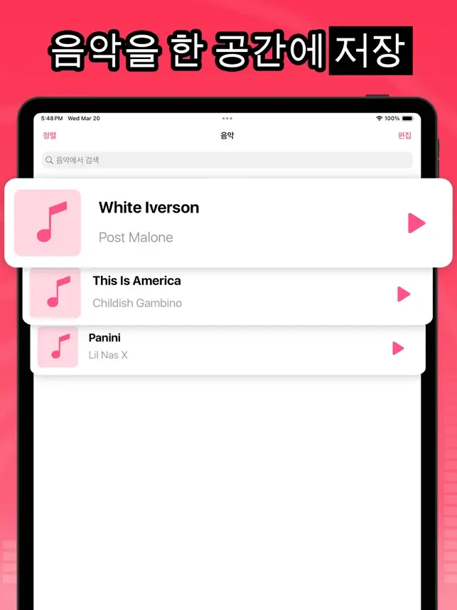 + iPod 보관함에서 이 앱으로 음악을 전송하세요!