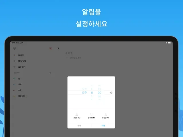 • 알림 기능으로 곧 있을 할 일 알림을 받아 무엇을 할지 결정할 수 있습니다.