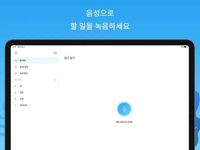• 음성으로 전에 없이 간단하게 할 일을 녹음하세요...