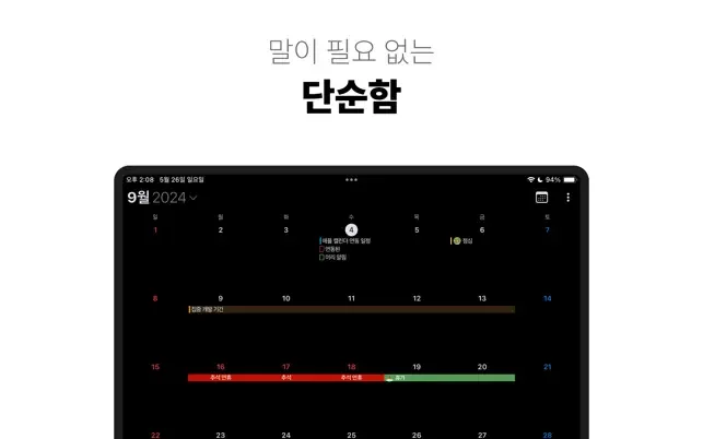 • 하나의 앱에서 모든 캘린더 계정을 볼 수 있습니다. 모든 이벤트를 목록이나, 일간, 주간, 월간으로 볼 수 있으며 iPad에서는 연도별로 볼 수도 있습니다.